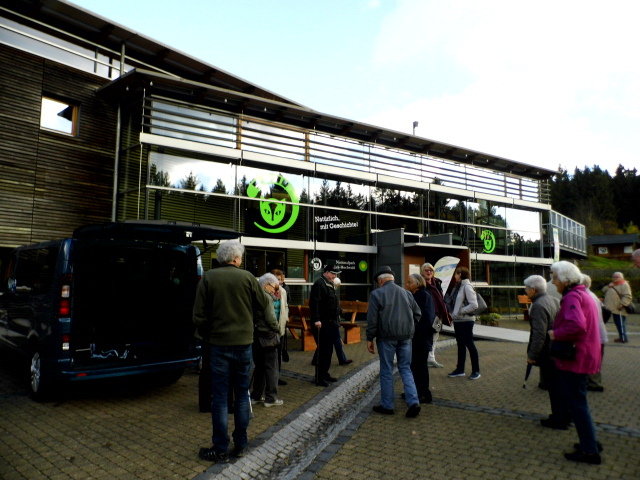 Gescheiterter Besuch des Hunsrückhauses am Fuß des Erbeskopf. Im Nationalpark Hunsrück – Hochwald, mit Zwischenstop am Erbeskopf angelangt, erwartete uns bei der Ankunft am Hunsrückhaus, trotz vorheriger Anmeldung, nur eine „Baustelle“. Die geplante Besichtigung und Führung durch einen Ranger fiel somit ins Wasser. Kurzerhand abgestimmt fuhren wir dann auf einer längeren Fahrstrecke durchs schöne Drohntal, vorbei an den Bescheider Mühlen, zum Zummethof. Die herbstliche Landschaft, mit noch grünen Wiesen und bunten Wäldern, entschädigte uns für die Enttäuschung zuvor. Ein schöner Nachmittag verflog, eigentlich wie immer, im Nu.