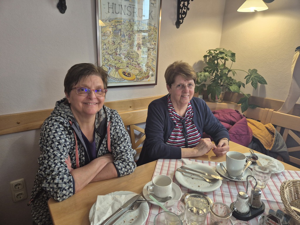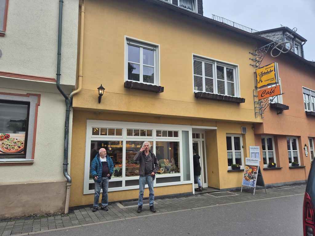 Dann mal auf nach Kastelaun zum Frühstück, naja, so einfach war es dann doch nicht in Kastelaun. Bei Preis und Sohn angekommen, wurde auf Nachfrage zu unseren reservierten Plätzen zuerst etwas verdutzt reagiert. „Ihr seid doch schon da! Ja dumm gelaufen, denn eine Gruppe, die nicht angemeldet war , fühlte sich offentsichtlich auf unseren Plätzen ganz wohl. Kein Problem, die Betreiberin organisierte und improvisierte in Windeseile, so dass wir doch noch an einer Tafel zum